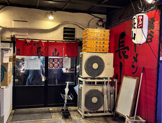 She was pointing at an open doorway with a sign in Japanese on the building above. Had she learned enough of the language to read ‘Ramen’? As we approached, I realized the kanji characters on the sign were noodles.