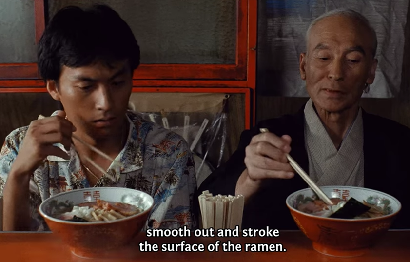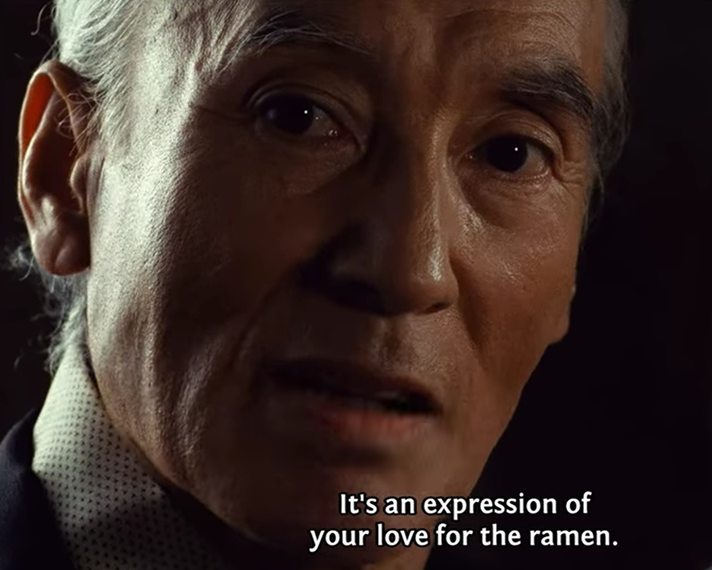 In one of the first scenes, Gun asks a great ramen expert the best way to begin eating when the bowl comes. The expert says first you appreciate it in its entirety. This sensei goes on to say: