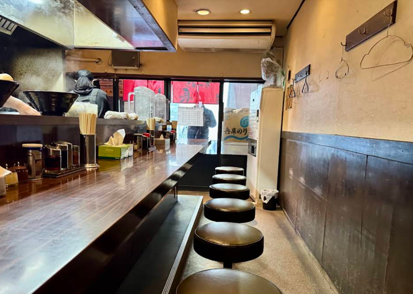 Just like the film, the place we had walked into also had counter service only, the chef also a woman, serving a row of blue collar workers who were all slurping. I didn’t feel comfortable taking a picture, so here’s a photo with no one in it.